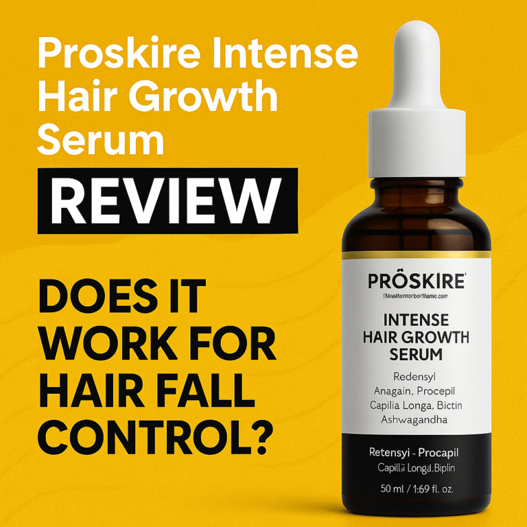 If you are struggling with continuous hair fall, thin hair, or slow hair growth, Proskire Intense Hair Growth Serum can be a good choice. It is formulated with proven hair growth ingredients and is gentle on the scalp.