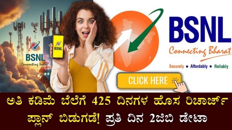 BSNL ಅತಿ ಕಡಿಮೆ ಬೆಲೆಯ 425 ದಿನಗಳ ಹೊಸ ರಿಚಾರ್ಜ್ ಪ್ಲಾನ್ ಬಿಡುಗಡೆ! ಪ್ರತಿದಿನ 2GB ಡೇಟಾ ನೀವೇನಾದರೂ BSNL (ಭಾರತೀಯ ಸಂಚಾರಿ ನಿಗಮ ಲಿಮಿಟೆಡ್) ಕಡೆಯಿಂದ …